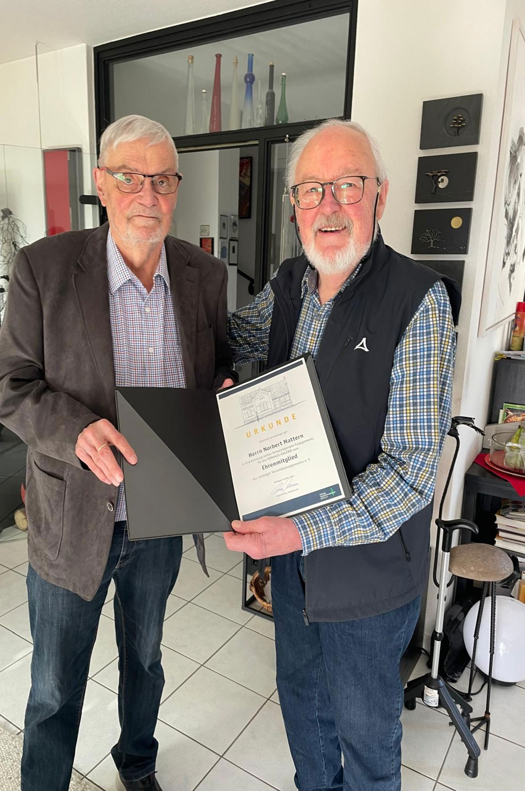 Anlässlich seines 80. Geburtstags wurde Norber Mattern vom Vorstand des Göttinger Verschönerungsverein e. V. zum Ehrenmitglied des Vereins ernannt. Norbert Mattern wurde für sein herausragendes Engagement für die Torhaus-Galerie geehrt.